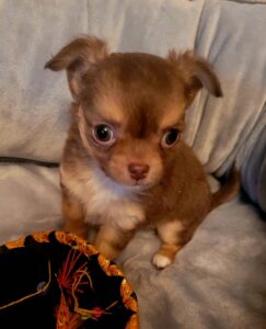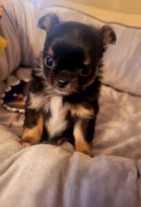Sofia is Absolutely an adorable long coat applehead Chihuahua with a beautiful Fawn with Black Sabling coat. She’s akc registered with an awesome blood line. Due to her small size, I’m listing her as a pet only. She’s well socialized and will make a perfect lifetime companion.