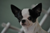 BLK & TAN SPOTTED ON WHITE SHORT COAT. Rosko has a beautiful applehead and a wonderful sweet personality. He has produced some exceptional puppies.
